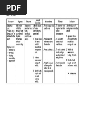 Nursing Care Plan - Anxiety - Free download as Word Doc doc docx PDF File pdf Text File txt or view presentation slides online. Nursing care plan for anxiety scribd.